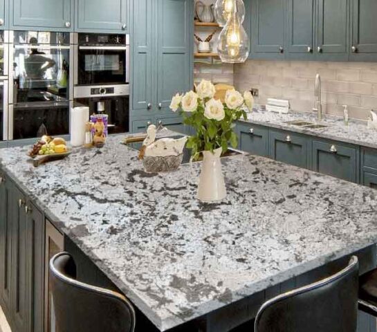 We use moisture-resistant materials such as quartz, granite, and solid-surface tops to handle daily use. Cabinets can include soft-close drawers, under-sink organizers, and custom hardware for a polished finish.